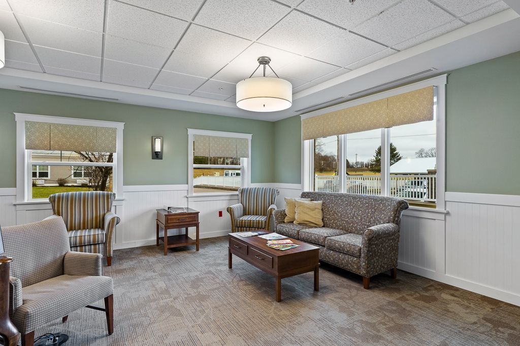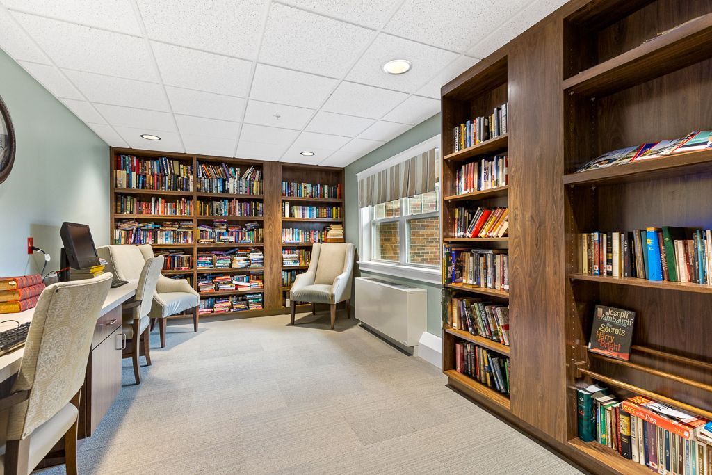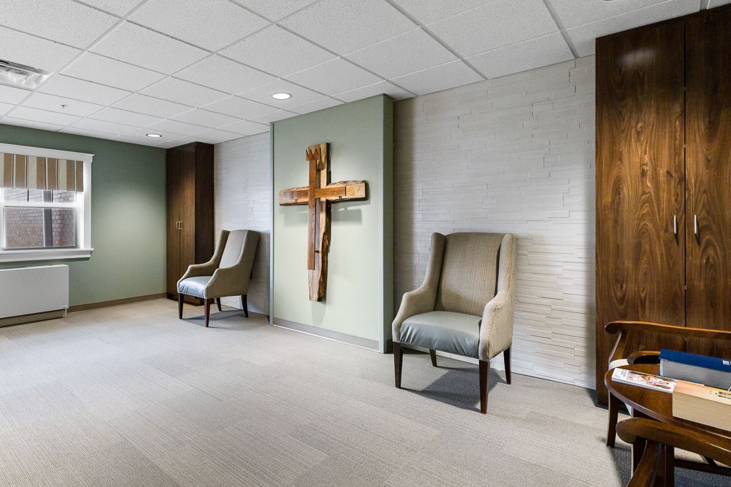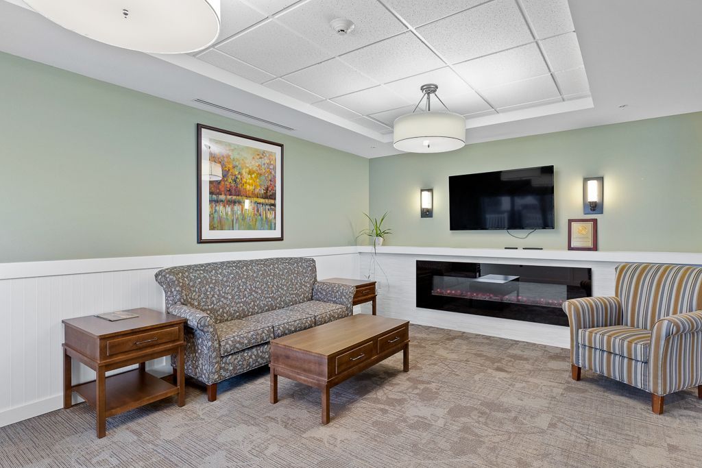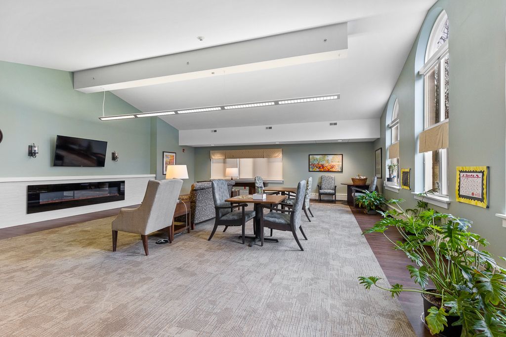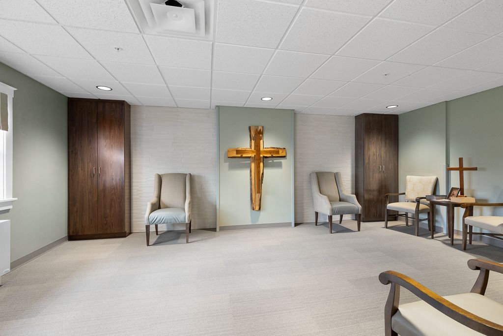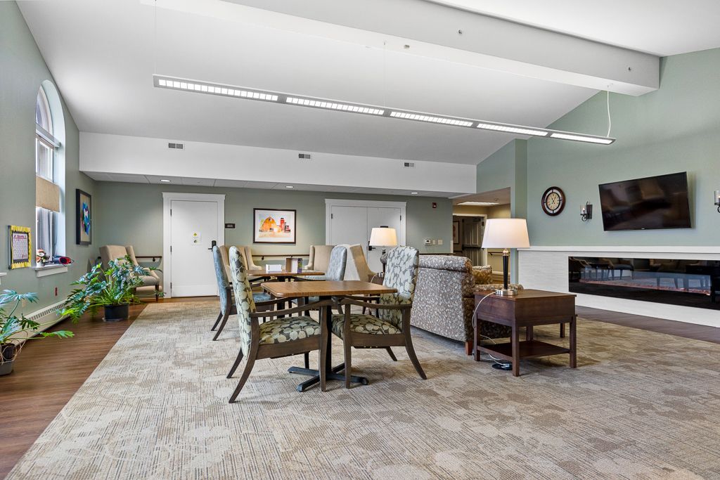 Residents are free to enjoy the peaceful setting of the chapel and library. Large gathering rooms are available for family and friends to visit and to share in celebrations together. Natural light fills the dining rooms and provides a pleasurable dining experience for all. Residents stay busy crafting, gardening and enjoying the grounds, which includes a fishing pond that is also home to ducks and geese.
