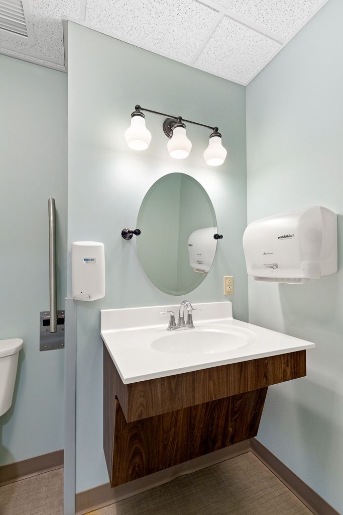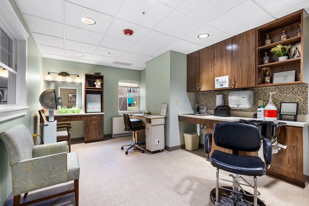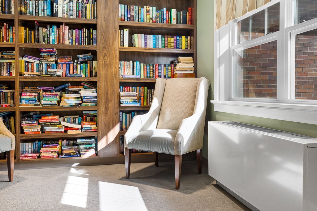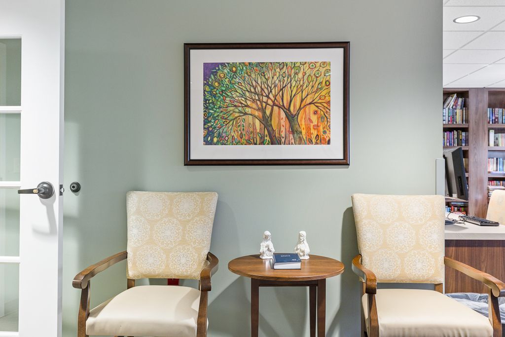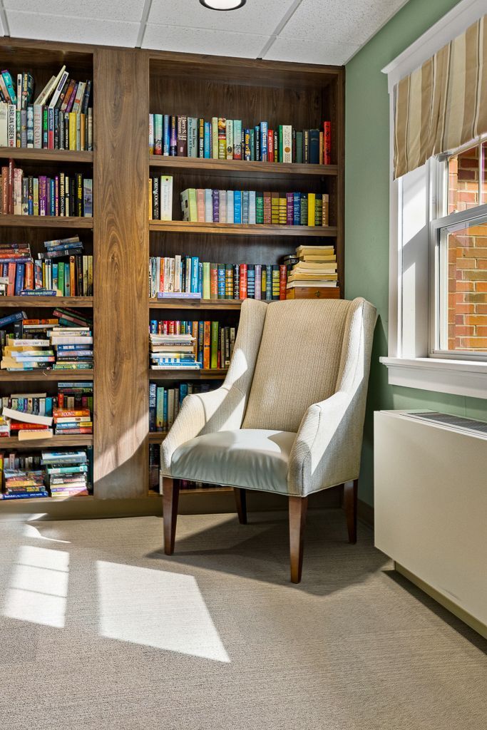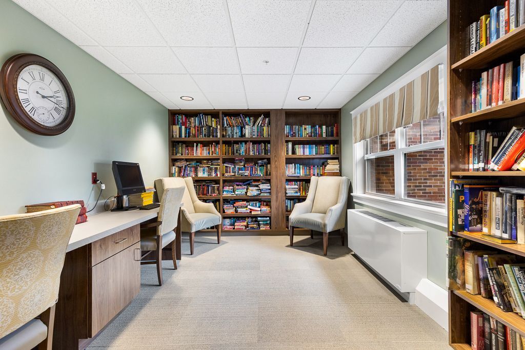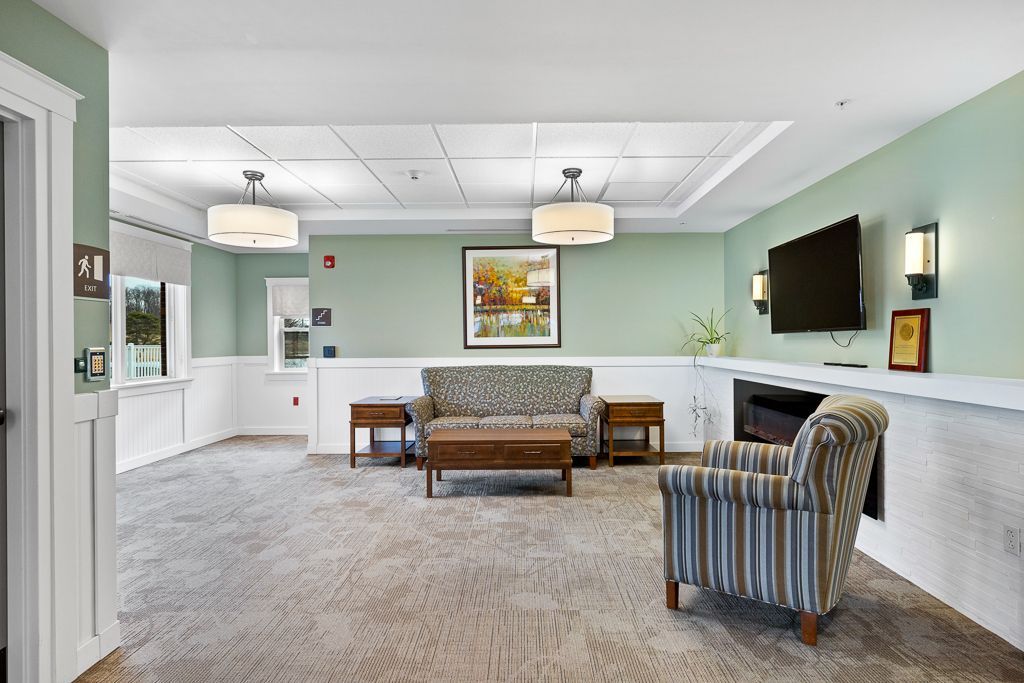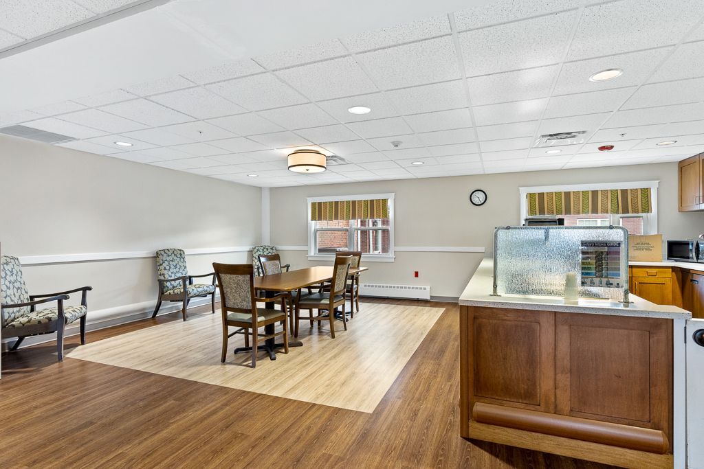 Residents are free to enjoy the peaceful setting of the chapel and library. Large gathering rooms are available for family and friends to visit and to share in celebrations together. Natural light fills the dining rooms and provides a pleasurable dining experience for all. Residents stay busy crafting, gardening and enjoying the grounds, which includes a fishing pond that is also home to ducks and geese.